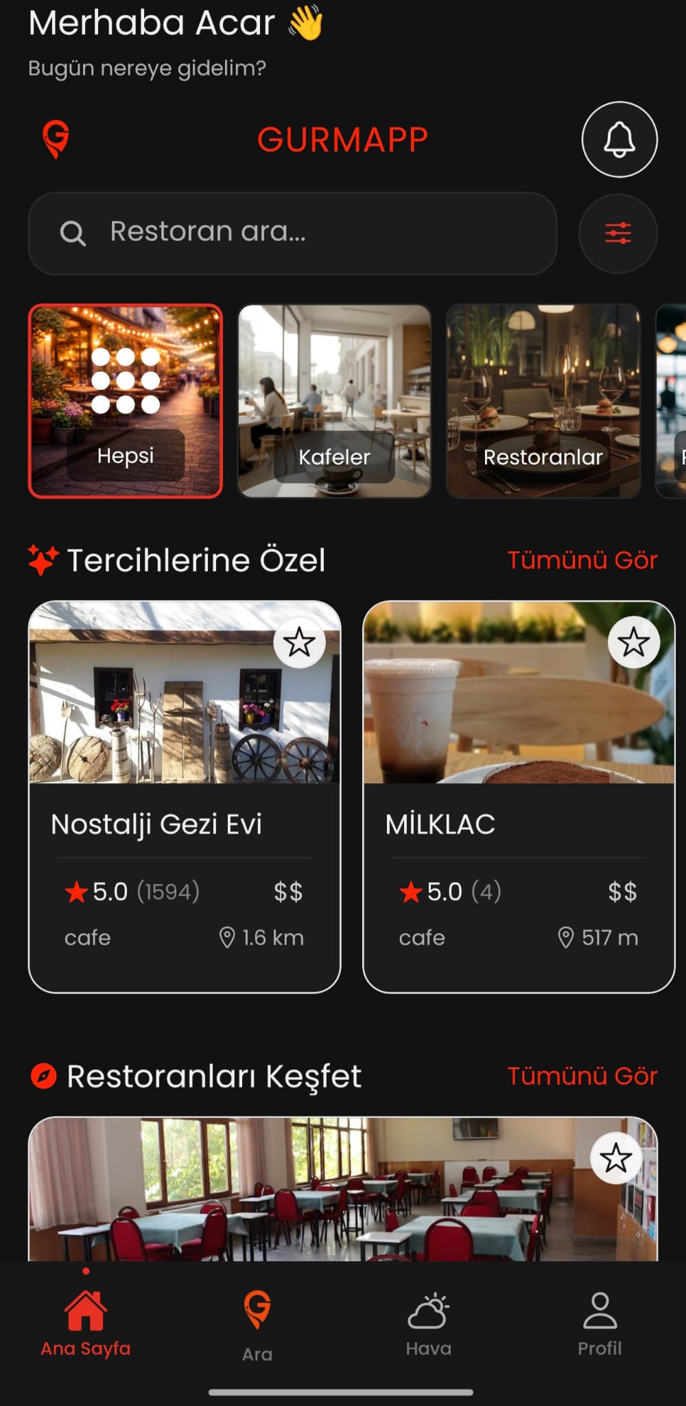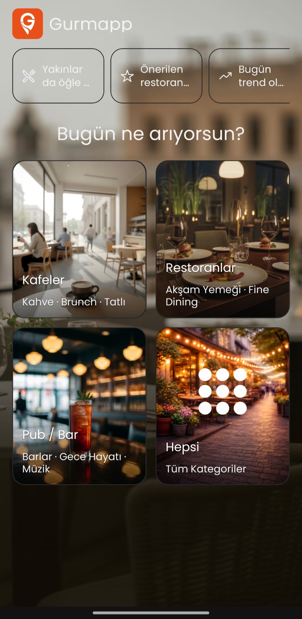 Gurmapp is a full-stack mobile venue discovery platform built from the ground up with React Native (Expo) on the frontend and a .NET 8 Web API on the backend. The app leverages GPS-based real-time search to surface nearby restaurants, cafes, and bars, combining Google Places API data with a proprietary multi-criteria rating system that scores venues across food quality, service, atmosphere, and value for money. What sets Gurmapp apart is its weather-aware recommendation engine. By integrating live weather data, the app intelligently adjusts suggestions,prioritizing cozy indoor spots on rainy days and open-air terraces when the sun is out. Users can capture and upload venue photos directly through an integrated camera module with on-device image compression, keeping uploads fast and data usage low. The app supports Apple Sign-In and Google Auth for frictionless onboarding, custom collections and bookmarks for organizing favorite spots, and ships with full internationalization support for both Turkish and English. Dark and light themes are baked in from day one. The entire backend runs on PostgreSQL with Firebase Cloud Messaging for push notifications, all containerized with Docker for consistent deployment. Gurmapp has been submitted to the Apple App Store and is currently under review.
